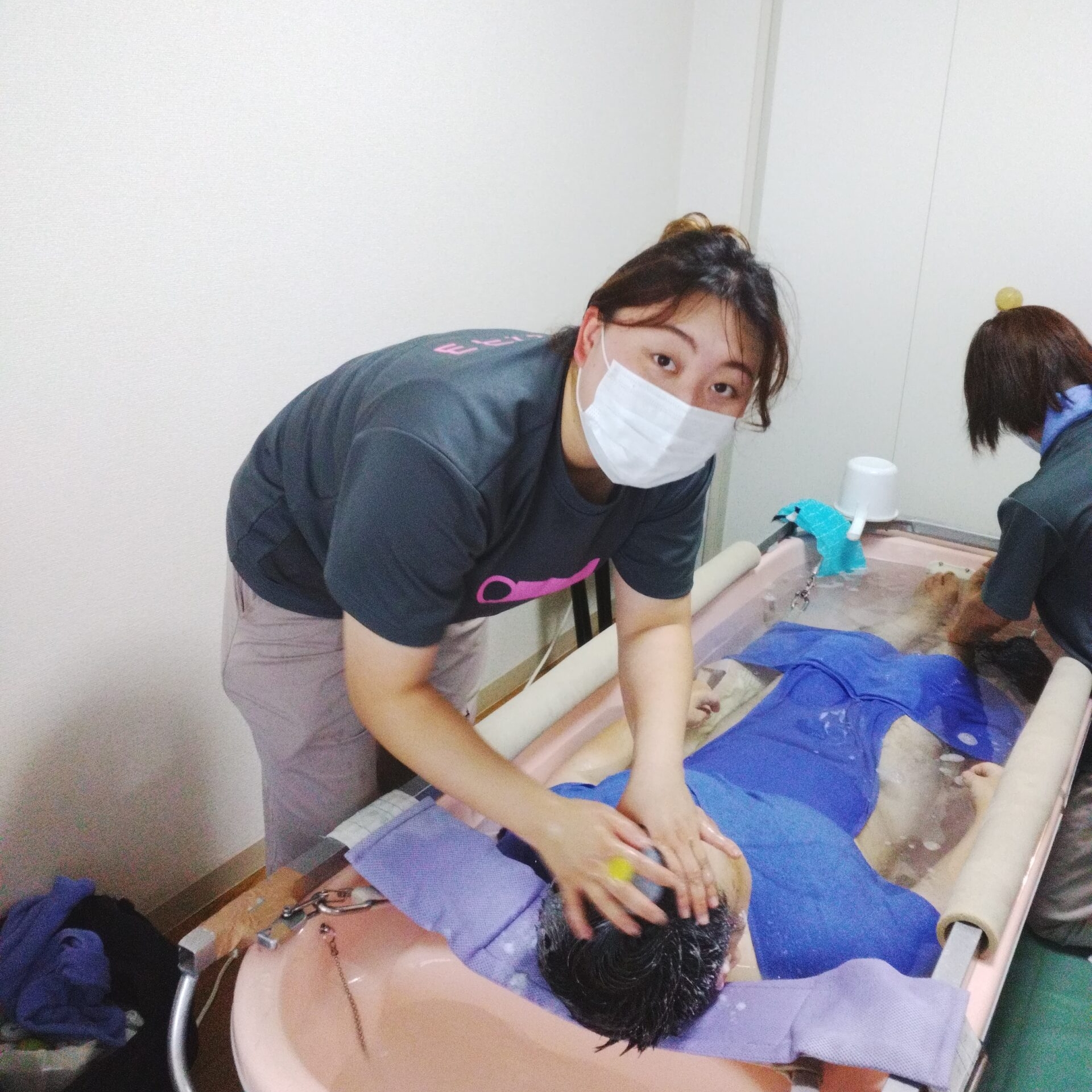 入社時に行われる完全マンツーマン方式による研修を修了した後も、個人・チームのスキルアップを目指した研修は継続的に行われます。手技の向上を目指した社内研修は、洗顔・洗髪に始まり、あらゆる場面においてのサービスを安全確実に提供できますよう介護技術の向上に取り組んでおります。また医療面から、さまざまな疾病における入浴可否の判断基準や、薬品の効果効能の知識の研修、サービス提供側に最も重要である接遇意識の向上を目指した研修など、社内にとどまらず社外講師を招いての研修や社外研修会に積極的に参加しています。